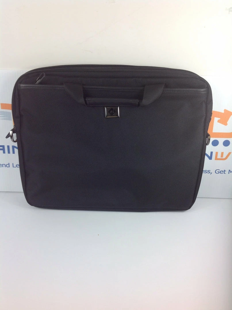 Fits a 15โ laptop made of black nylon. Many pockets front and back with two large pockets for papers, books and cushioned pocket for laptop. Handles to make it easy to carry. Black. Inside dimension 16W” x 12H”