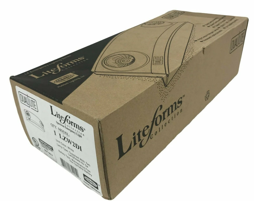 The Dual-Lite LZ2 is a low-profile, double head, easy to install, 6V 5W emergency lighting unit with white housing. Increased spacing, remote capacity and/or additional run-time is provided by a high-output LED based MR16 option. Its integrated lamp design helps achieve greater protection from vandalism. The LZ series features two halogen MR16 lamps which provide illumination. The lamps are located inside an “eyeball” style adjustable housing. For greater light output, this emergency lighting unit has standard 5 watt halogen lamps.