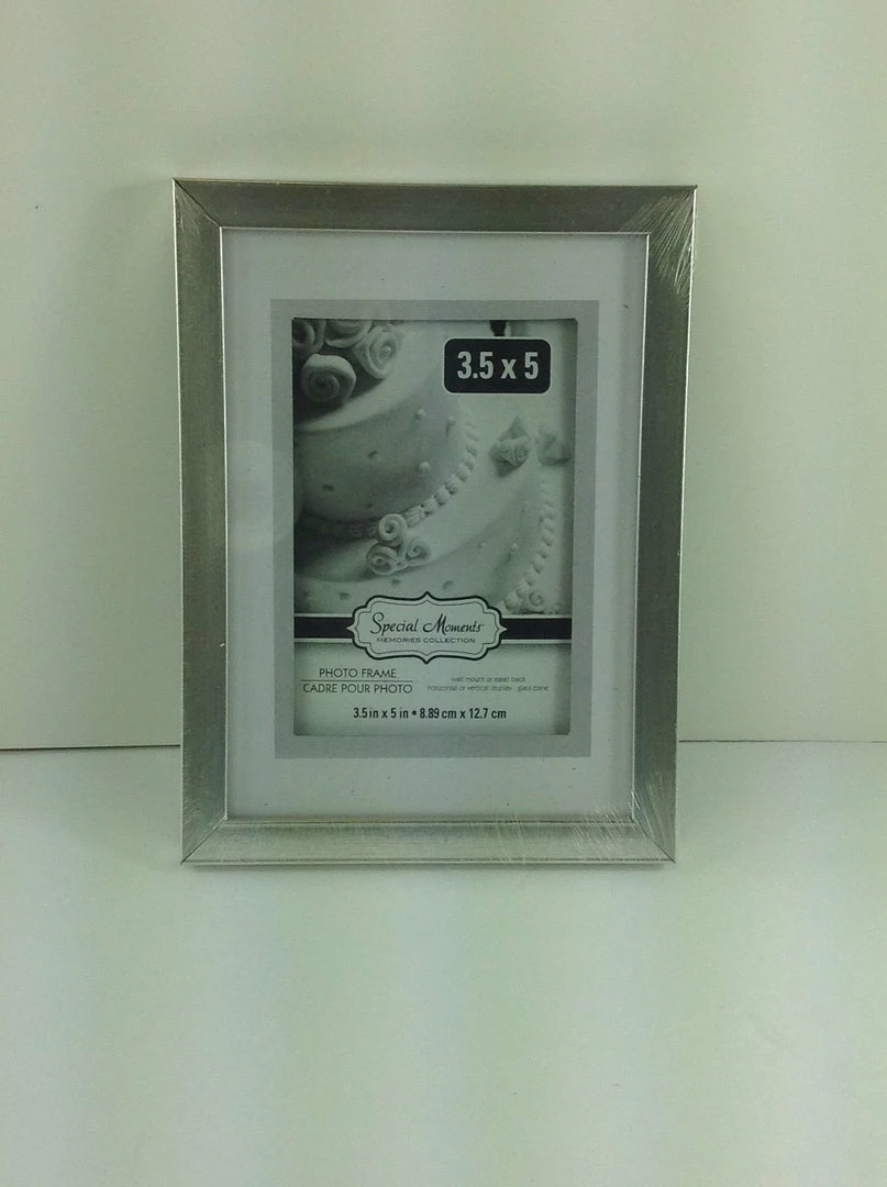 Special moments picture frame for wall mount or easel back horizontal or vertical display with glass pane.Β 3.5″ x 5″ Silver