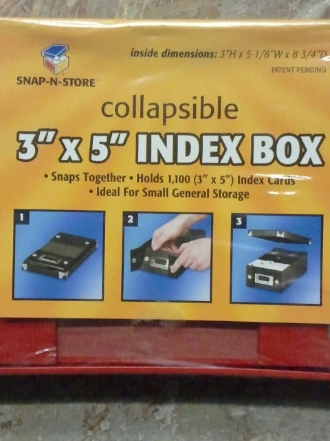 Snap-N-Store Collapsible Index Card File Box, Holds 1,100 3 x 5 Card.