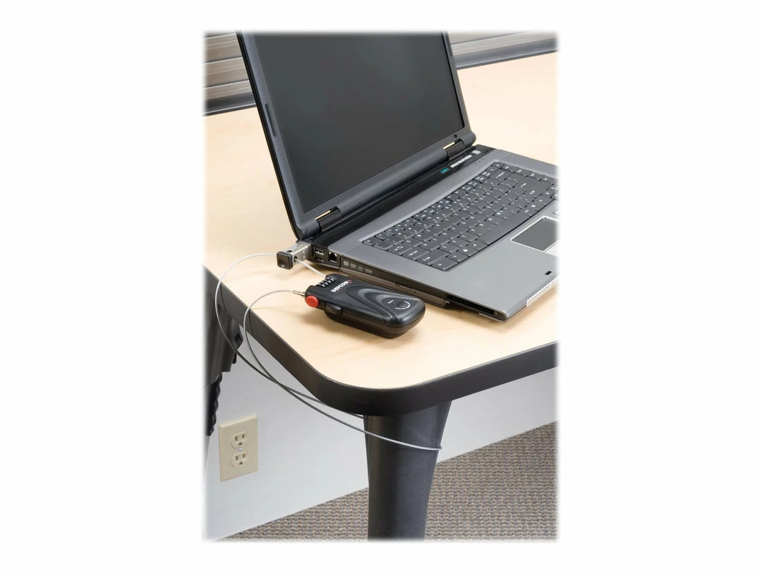 Easily attaches to your carrying cases, luggage, or laptops equipped with a security lock slot with a retractable steel cable retracts into plastic housing at the press of a button and re-settable 4-digit combination lock- up to one of 10,000 unique combinations available.
