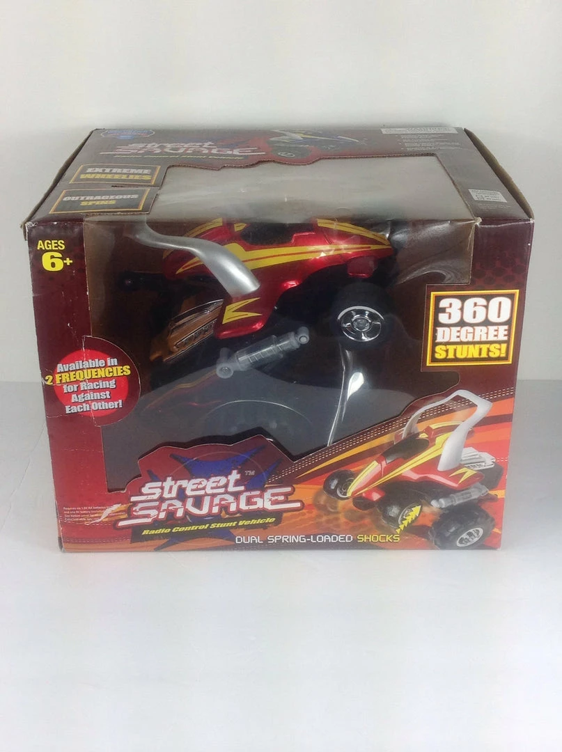 Fuel Your Child’s Need For Speed! Fasten your seatbelts and put the pedal to the metal with the Sharper Image RC Street Savage Stunt Car! This small yet mighty remote-control toy car features all the coolest tricks that’s sure to leave children breathless! Action Packed Features That’ll Wow The Crowd! Perform 360-degree spins, wild wheelies, sharp corner turns, and much more with the Street Savage’s spring-loaded shocks while the knobby tires grip onto all sorts of terrain for easier driving/navigation. A full function wireless remote control offers a multi-directional operation complete with two types of radio frequencies for competitive racing with another friend’s RC vehicle. Quality You Trust The Sharper Image RC Street Savage Stunt Car is one remote control toy built for speed, durability, and high performance in a compact design! It’s the perfect gift for that special someone in your life and delivers long-lasting top notch results to boot.Β
